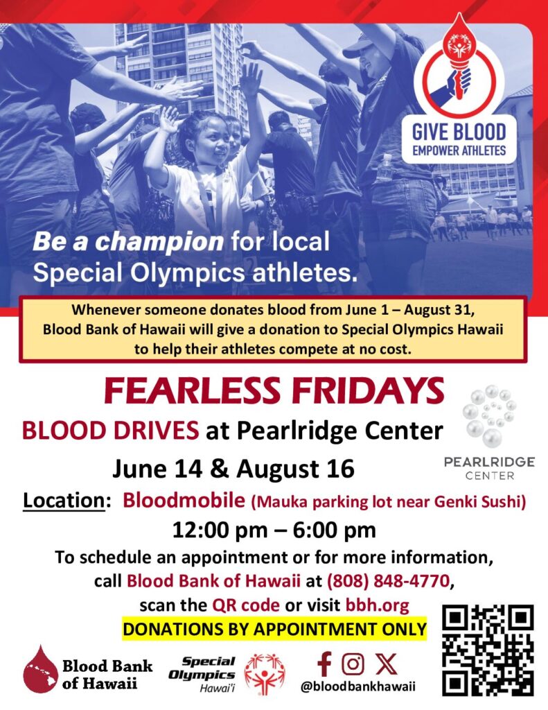 Fearless Fridays at Pearlridge: Blood Bank of Hawaii Blood Drive Read More »